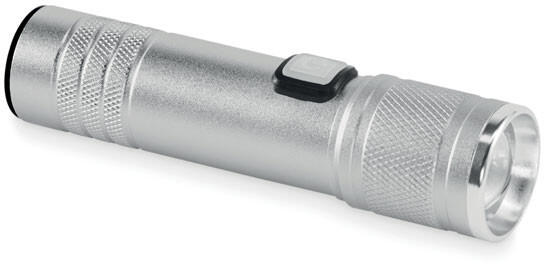Újratölthető COB zseblámpa újrahasznosított alumíniumból. 100 lumen fényerővel, 3 fénybeállítással és fókuszálási funkcióval. Beépített 800 mAh újratölthető akkumulátor. Töltőkábellel.