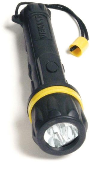 Gumírozott Ledes lámpa. 12 lumen. Fényforrás: 3db Super LED. Csuklópánt Elem: 2db AA (ceruzaelem). A termék az elemeket nem tartalmazza.